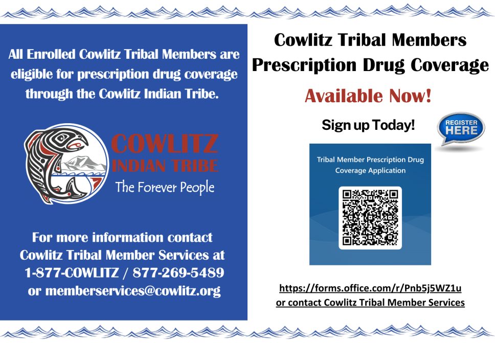 Cowlitz Indian Tribe has partnered with Prescryptive to provide all Cowlitz Tribal Members nationwide with free Prescription drug coverage.